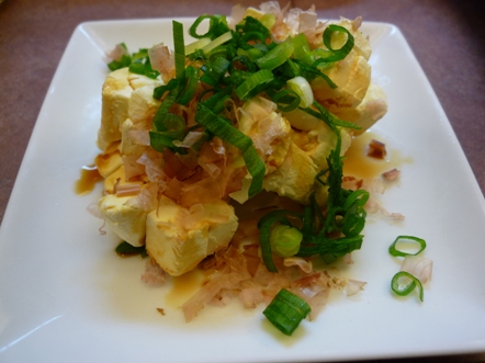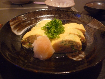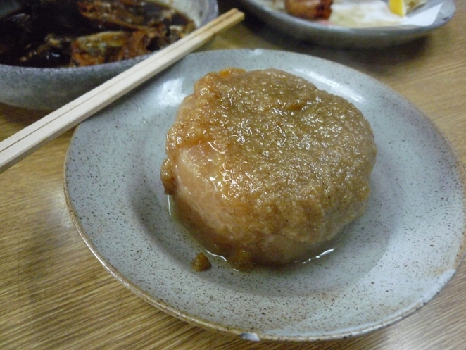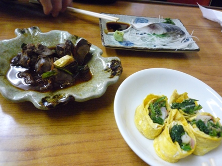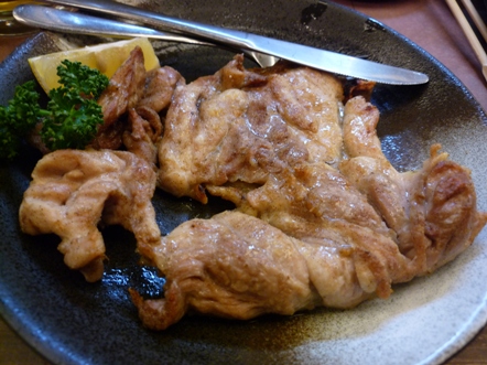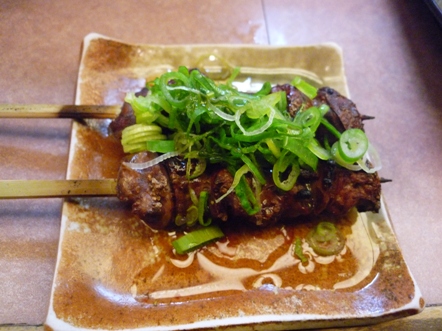 肝をサッと炙ったのにゴマ油と葱をのせたやつ