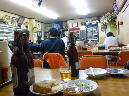 入ると店内は2組のお客さん、座敷に通されてまずはビールで乾杯