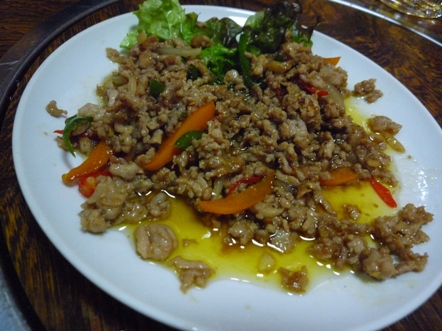タイヤキメシと酸っぱ辛い豚のサラダ