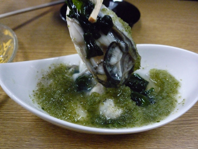 でっかいフレッシュなカキを独特な青酢でチュルっと