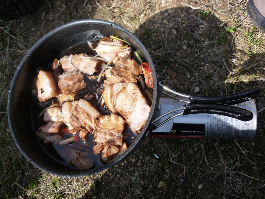 鍋やチャーシューなどで昼間からワイワイ酒盛り