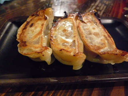 ふつうの倍以上あるでかい餃子、3個で450円とちと割高感があるけども