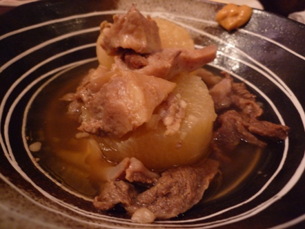 二の腕ほどもあるごっつい大根がかなり柔らかくて、よー味が染みてるん